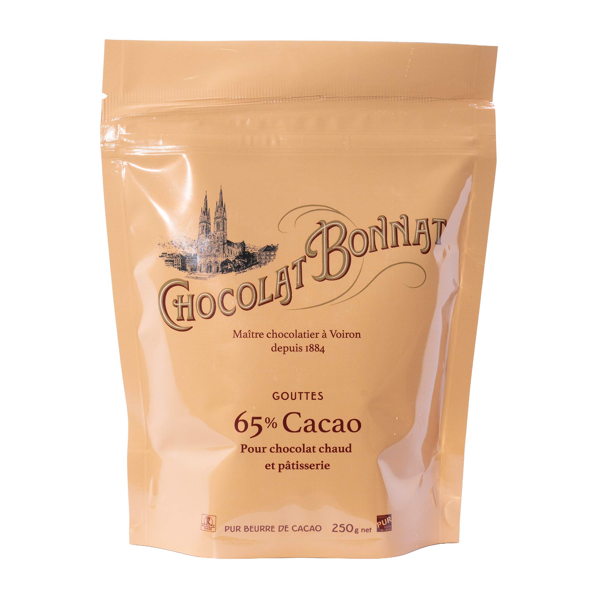 Bonnat Trinkschokolade 65 % Kakao im 250-g-Beutel: kräftig, cremig und fein ausbalanciert. Für heiße Schokolade wie aus der Chocolaterie – klassisch oder vegan zubereitet.