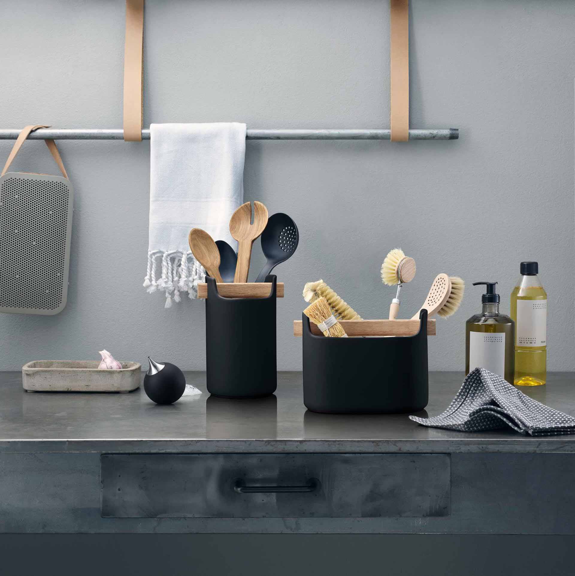 Entdecke die Eva Solo Toolbox - Dein stilvoller und praktischer Organizer für Küchenutensilien. Aus Keramik und Eichenholz, perfekt für jede Küche.