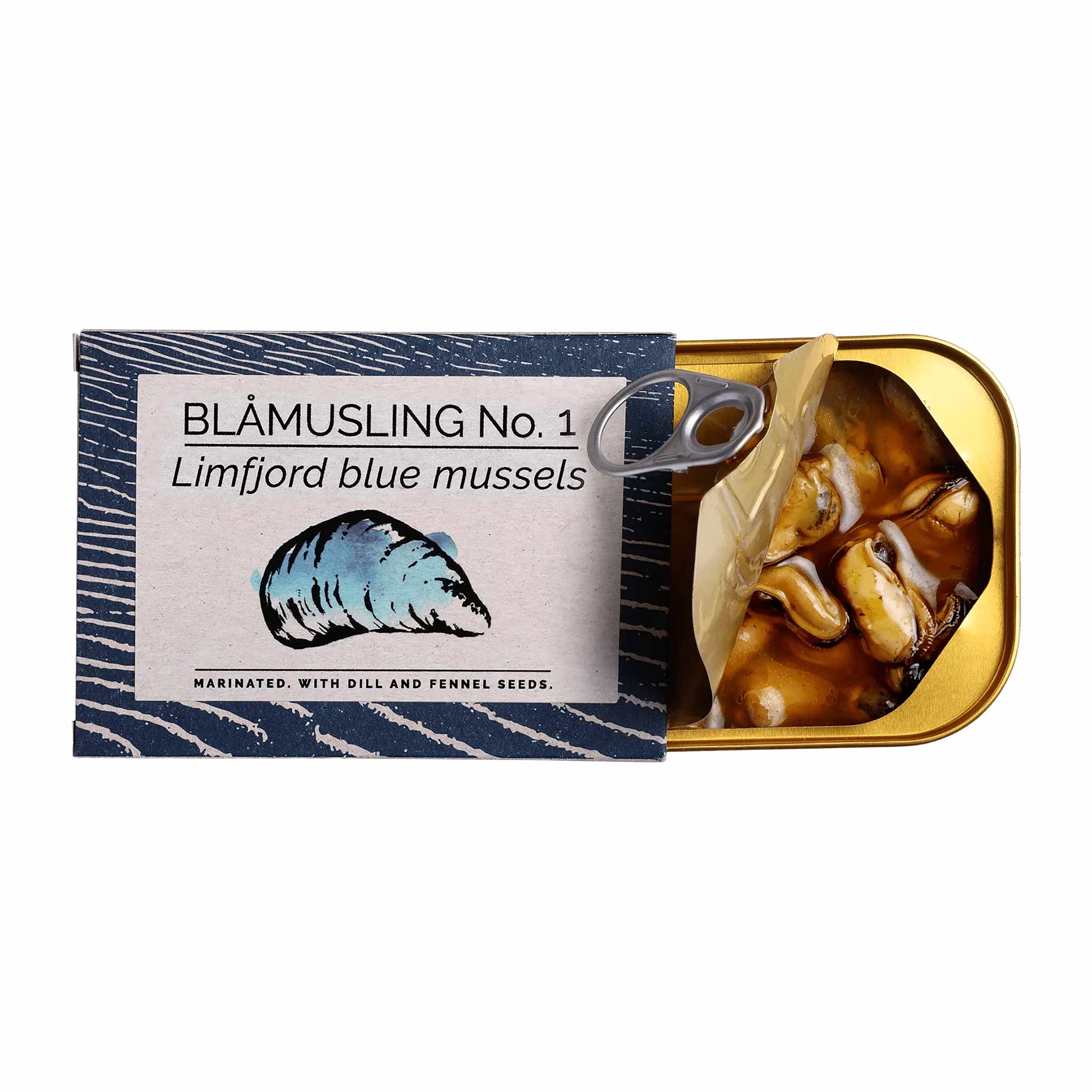 Die Miesmuscheln für Blåmusling No. 1 stammen aus dem Limfjord, einer einzigartigen Meereslandschaft, die Nordsee und Kattegat verbindet. Das klare, nährstoffreiche Wasser bietet ideale Bedingungen für das langsame Wachstum der Muscheln. Diese natürliche Reifung verleiht ihnen ihr zartes Fleisch und das fein maritime Aroma. Nach dem Fang werden sie in Kopenhagen von Hand geöffnet, gereinigt und sorgfältig eingelegt – ein Prozess, der die Qualität und den Geschmack der Muscheln bewahrt.