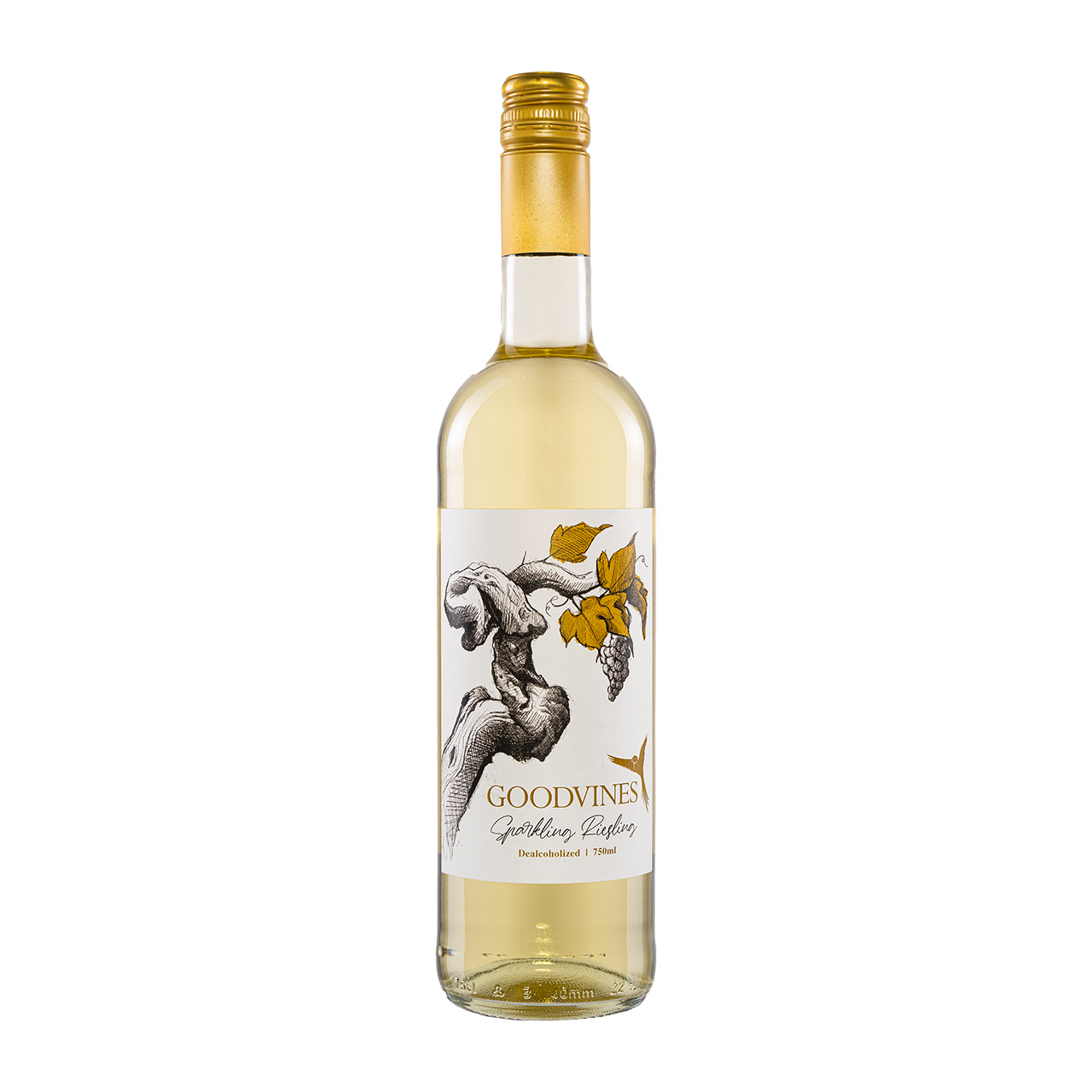 Bei der Herstellung des Goodvines Sparkling Riesling kommen, neben ausgewählten, fruchtig-säuerlichen Rieslinge aus Rheinhessen oder der Pfalz, modernste Technologien und das Wissen erfahrener Wein-Entalkoholisierer zum Einsatz. Während der sogenannten Vakuumdestillation verdampft der im Wein enthaltene Alkohol schonend in Edelstahltrichtern bei 30° Celsius. Die zunächst gelösten Bukettnoten, also die leicht flüchtigen, aber geschmacksgebenden Stoffe des Weins, werden aufgefangen und separat gelagert, so daß der Alkohol im Anschluss vollständig verdampfen kann und ein Endprodukt mit 0,0% Alkohol entsteht. Dem entalkoholisierten Weißwein wird nun sein natürliches Bukett unverändert wieder zugefügt, was den authentischen Geschmack möglich macht. Um den Sparkling Riesling nach dem Alkohlentzug zu harmonisieren, erhält er vor der Abfüllung eine sogenannte Versanddosage (frz.: liqueur d’expédition), die aus Traubenmostsirup besteht.