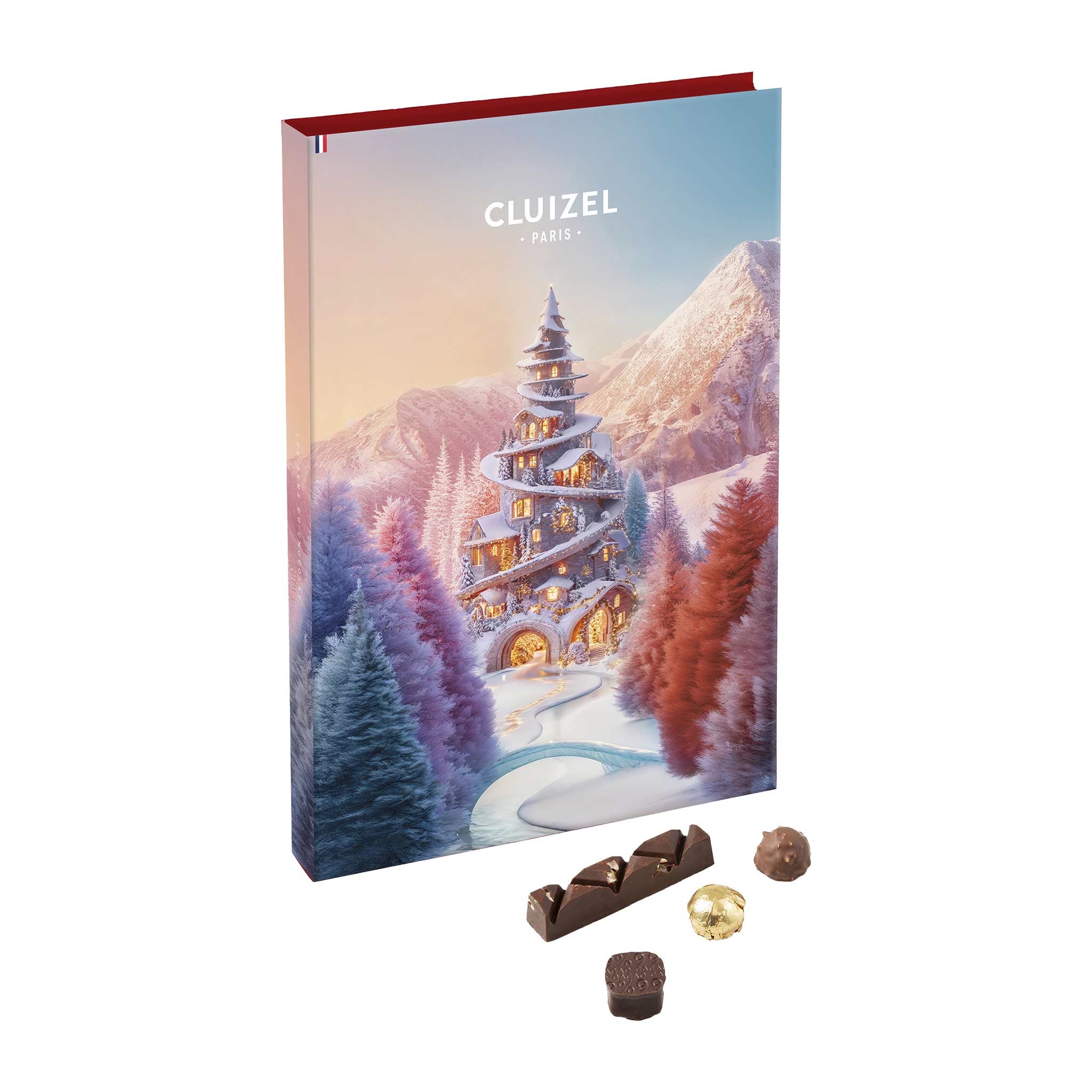 Die vier raffinierten Produkte (mit recycelbaren Schachteln*) der Kollektion, wie dieser Adventskalender, sind eine Verbeugung vor köstlichen Schätzen, die von einem beispielhaften und anspruchsvollen Know-how getragen werden. Jedes Türchen ist ein Zwischenstopp, jede Schokolade eine Geschichte, die es zu entdecken gilt! Tauche ein in die magische Welt von CLUIZEL